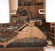 JR東日本E351系の車間で使われている角形の片栓仕様のジャンパ連結器で,定格100[V]の102心です。振り子車の為でしょうか,この栓受けは連結器にステ−を介して取り付けられています。