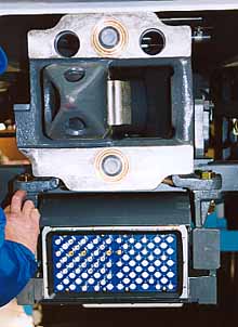 接触子はKE150などと同じ82心です。向かって左側は凹型の突合せ接触子,右側は凸型の突合せ接触子が使われています。さらに一部の接触子には接触抵抗の低減の為か金メッキが施されていることが判ります。