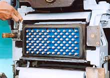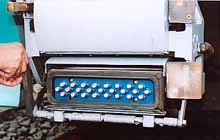 | 電気連結器上段内部 上段は向かって左側半分が凹形突合せ接触子,右側半分が凸形突合せ接触子を使用しています。心数はKE150と同じ82心です。 |
