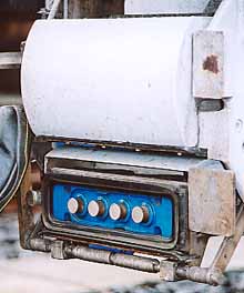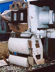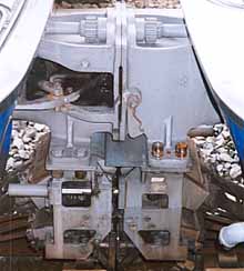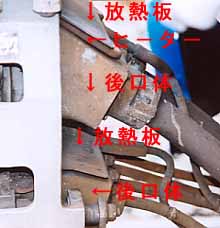 | ヒ−タ− 連結器体及び後口体の凍結防止を図るヒ−タ−が内蔵されています。連結器体及び後口体の上に凍結防止ヒ−タ−が這わされ,その上に放熱板が載る構造となっています。写真はWKE400の後部を撮したもので,主電連と副電連各々にヒ−タ−が装着されている様子が判ります。 |