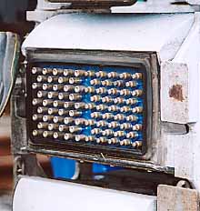 | 主電連 上段の電連でベ−スは82心のKE150です。向かって左側半分が凹型突合式接触子41心,向かって右半分が凸型突合式接触子が41心内蔵されています。 |